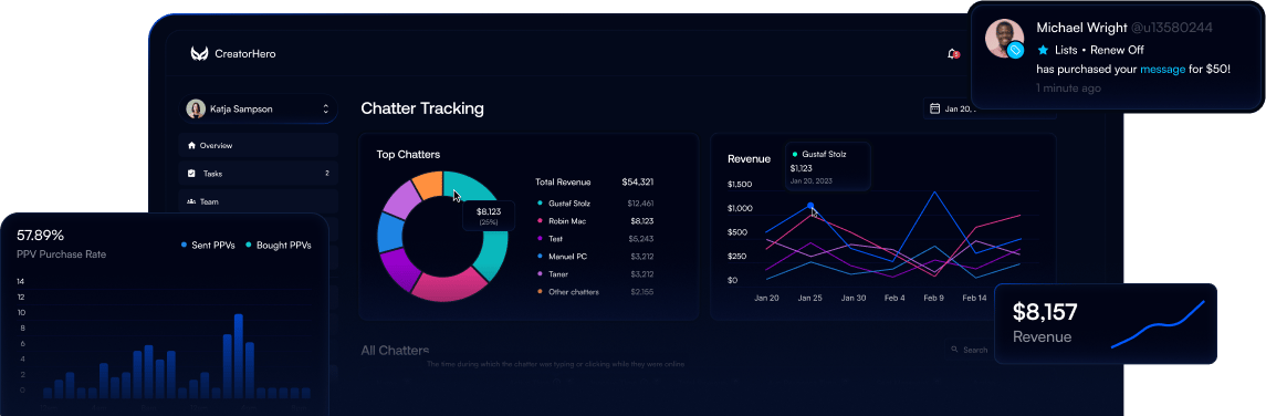 With CreatorHero you can get the maximum revenue out of your OnlyFans Creators.
